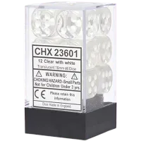 Translucent 16mm d6 12 Dice Block Clear/White CHX 23601