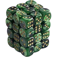 Gemini 12mm d6 36 Dice Block Black-Green/Gold CHX 26839