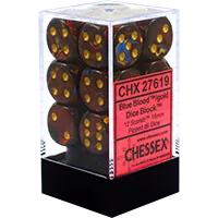 Scarab 16mm d6 12 Dice Block Blue Blood/Gold CHX 27619