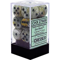 Marble 16mm d6 12 Dice Block Green/Dark Green CHX 27609