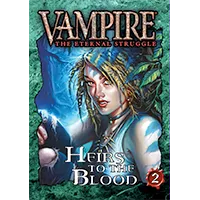 This set is a fixed assortment of 120 cards for Vampire: The Eternal Struggle – 56 library cards and 64 crypt cards of clans Ahrimanes, Daughters of Cacophony, Kiasyd, Salubri, Salubri antitribu and True Brujah. All were first created for the original Heirs of Blood expansion 2010, since long out of print and in great demand among players.