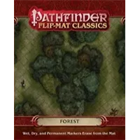 Stay on the path! Defend the deep, dark woods on this sweeping tactical map depicting the verdant floor of the deep forest! One side features a stream winding through woods near a druidic circle, while the other depicts a woodland environment perfect for a scenic ambush. This portable, affordable map measures 24 x 30 unfolded, and 8 x 10 folded. Its coated surface can handle any dry erase, wet erase, or even permanent marker. Usable by experienced GMs and novices alike, Pathfinder Flip-Mats fit perfectly into any Game Master's arsenal! The world's most popular Flip-Mats roar back into print with Flip-Mat Classics! Why take the time to sketch out ugly scenery on a smudgy plastic mat when dynamic encounters and easy clean-up are just a Flip away?